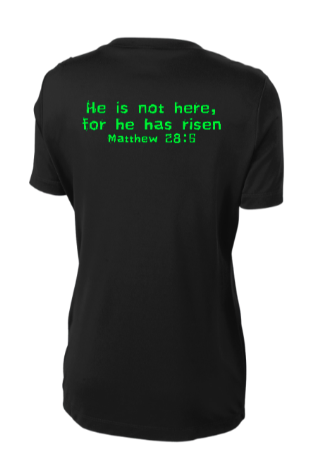Make a clear statement in this one of a kind dri-fit shirt that is sure to start some great faith conversations!
